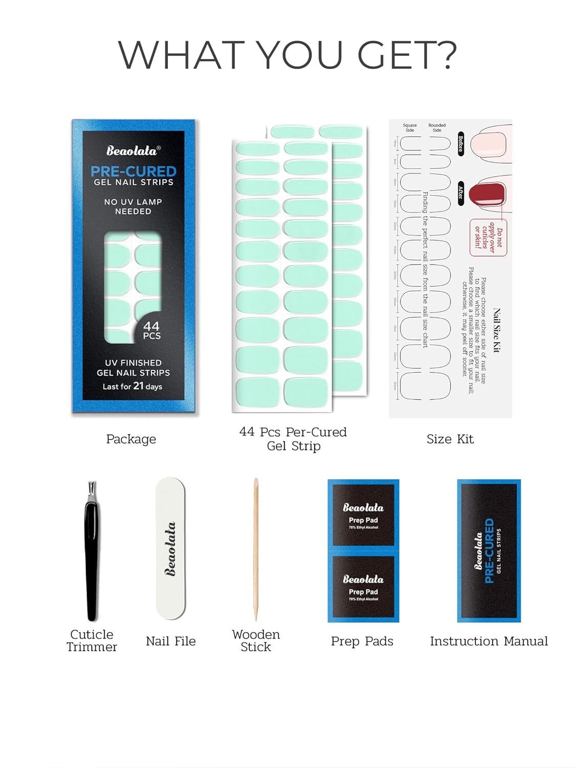 - Pre-Cured gel nail strips : Beaolata pre-cured gel nail strips utilize innovative technology that combines color gel with top coat gel, Professional Nail Results but no UV Lamp Needed.