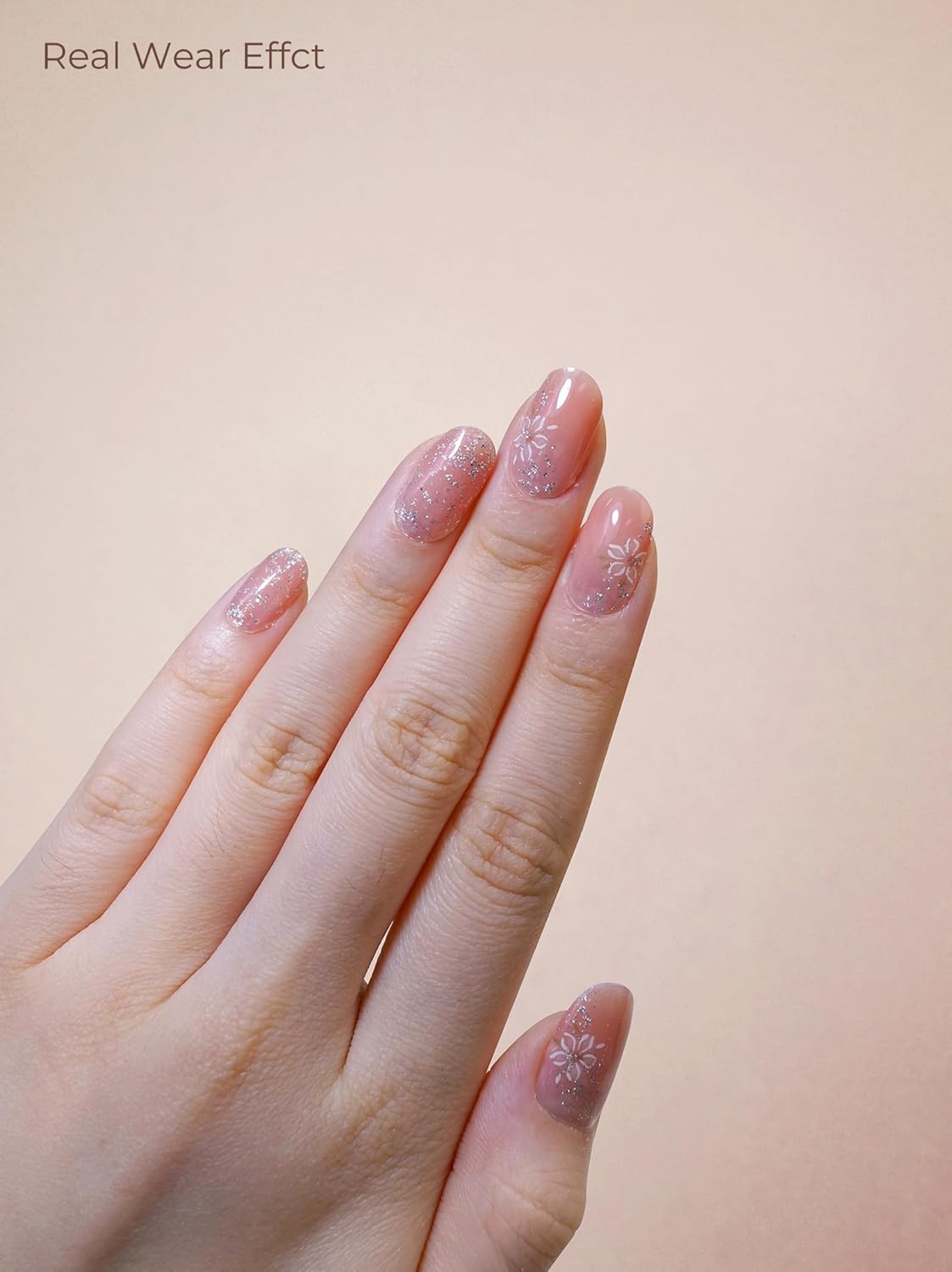 Pre Cured Gel Nail Strips - 44PCS Salon Quality Gel Nail Stickers - Long Lasting Polish Wraps for Women no UV Light Needed Easy Apply& Remove (Sparkle Pink)