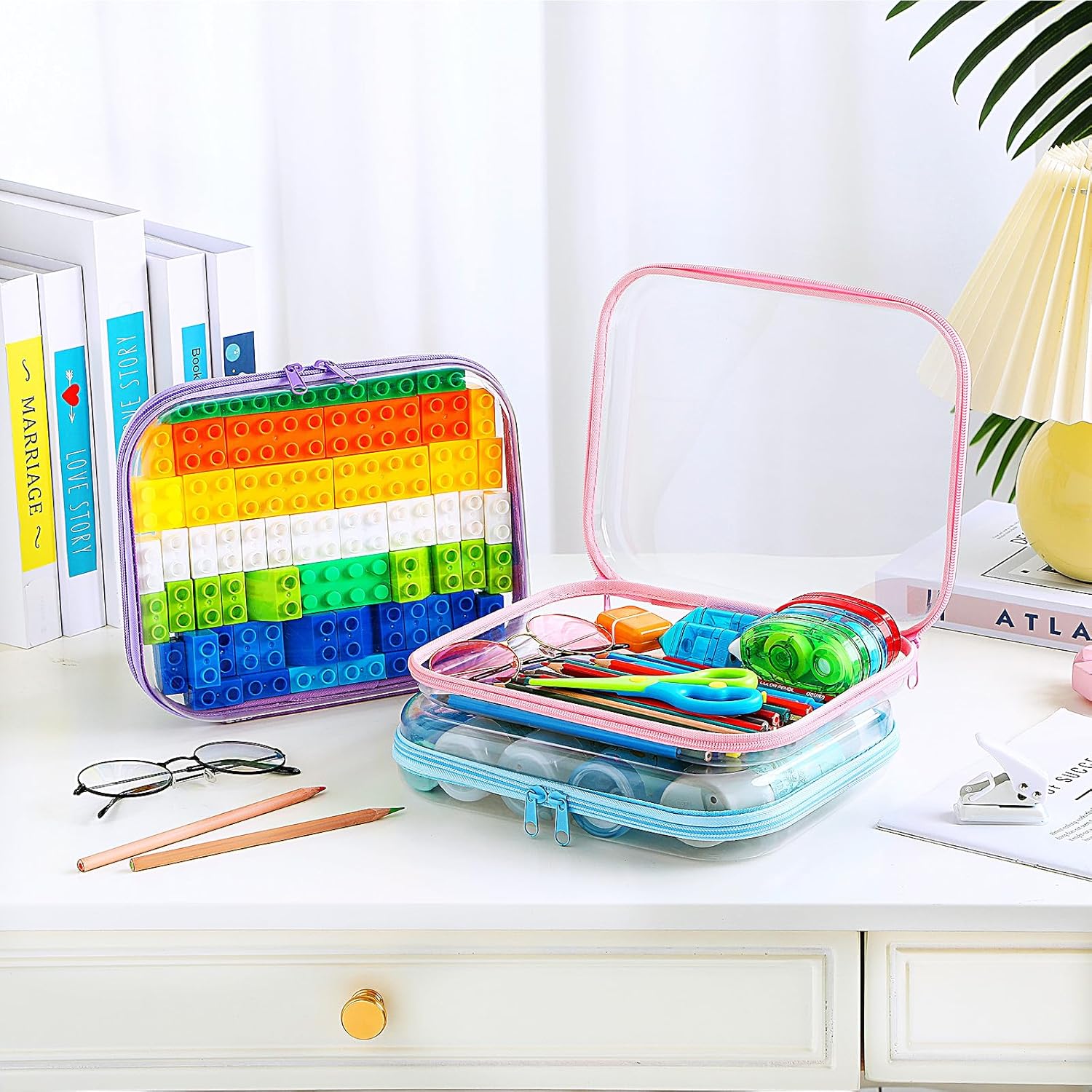 - Wide Range of Scenarios: these clear hard zipper cases offer a flexible solution for organizing everything from toiletries and cosmetics to office supplies and electronics; Their robust design keeps your essentials secure, making them suitable for use in classrooms, offices, bedrooms, bathrooms, laundry rooms, kitchens, craft spaces, and garages; Whether at home or outside, work, these cases adapt to your needs, bringing order to every corner of your life