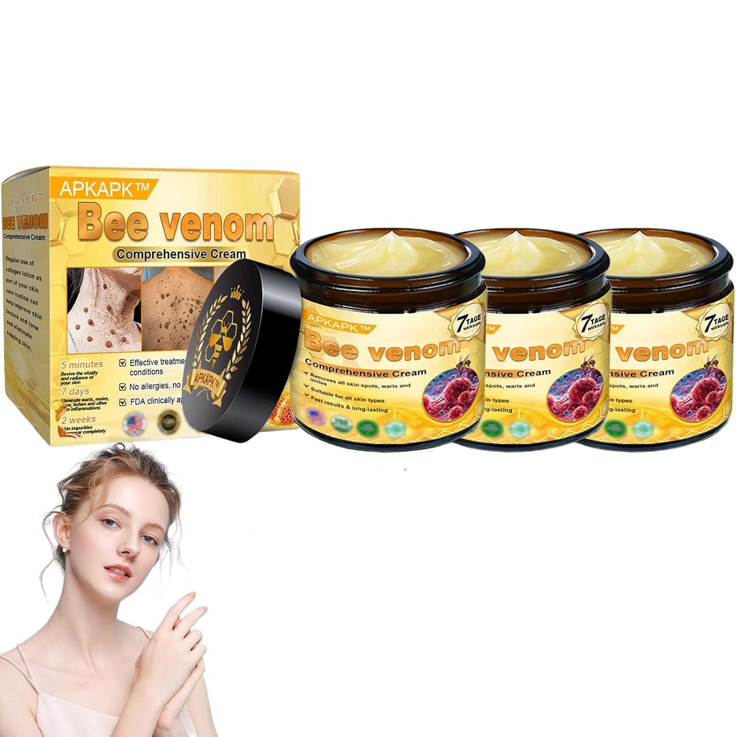 - ✅【Powerful skin improvement】The whole APKAPK Bee Venom Skin Treatment Cream contains rich and powerful ingredients to help reduce various skin problems, nourish, moisturize and plump the skin, making the skin healthier and fuller, and making the skin firmer and younger.