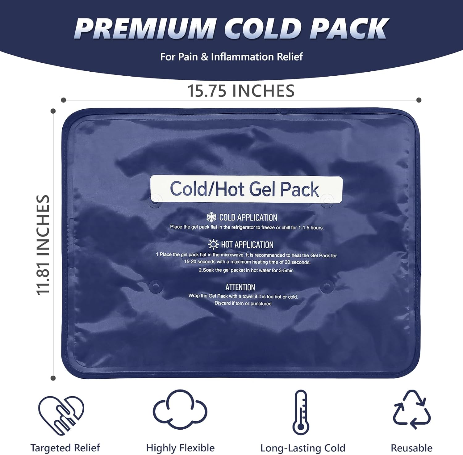 Reusable Gel Soft Ice Packs for Injuries, Flexible Hot and Cold Packs Bag for Knees, Back, Face, Joint & Muscle Pain Relief (Large 11.81"x 15.75")