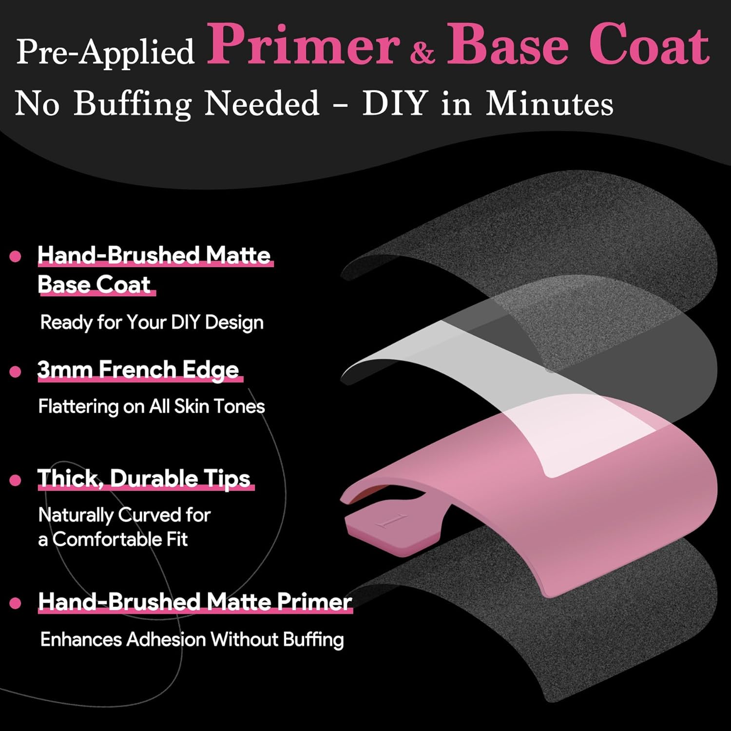 - Pre-Coated with Primer & Matte Base: Instant Art-Ready, each toenail press ons tip comes with hand-applied primer and base coat, ready for design. No buffing needed! The matte finish allows easy DIY—paint, decorate, or add rhinestones, get a salon-quality DIY pedicure in just 10 minutes, even if you're a beginner!
