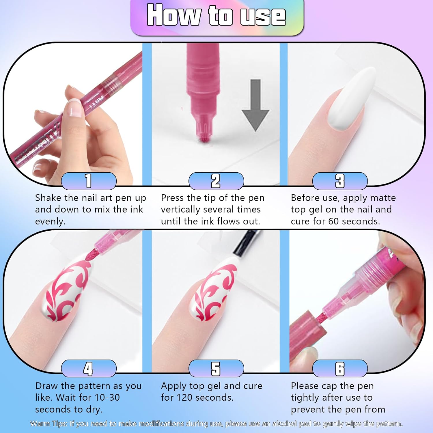 - 【Suitable for Multiple Uses】These nail art pens are not only suitable for nails, but also perfect for art creation on other surfaces such as paper, cardboard, and even phone cases, bottles, and drinking glasses. Their versatility makes them a great tool for craftsmen and artists who love to try other mediums besides nail art.