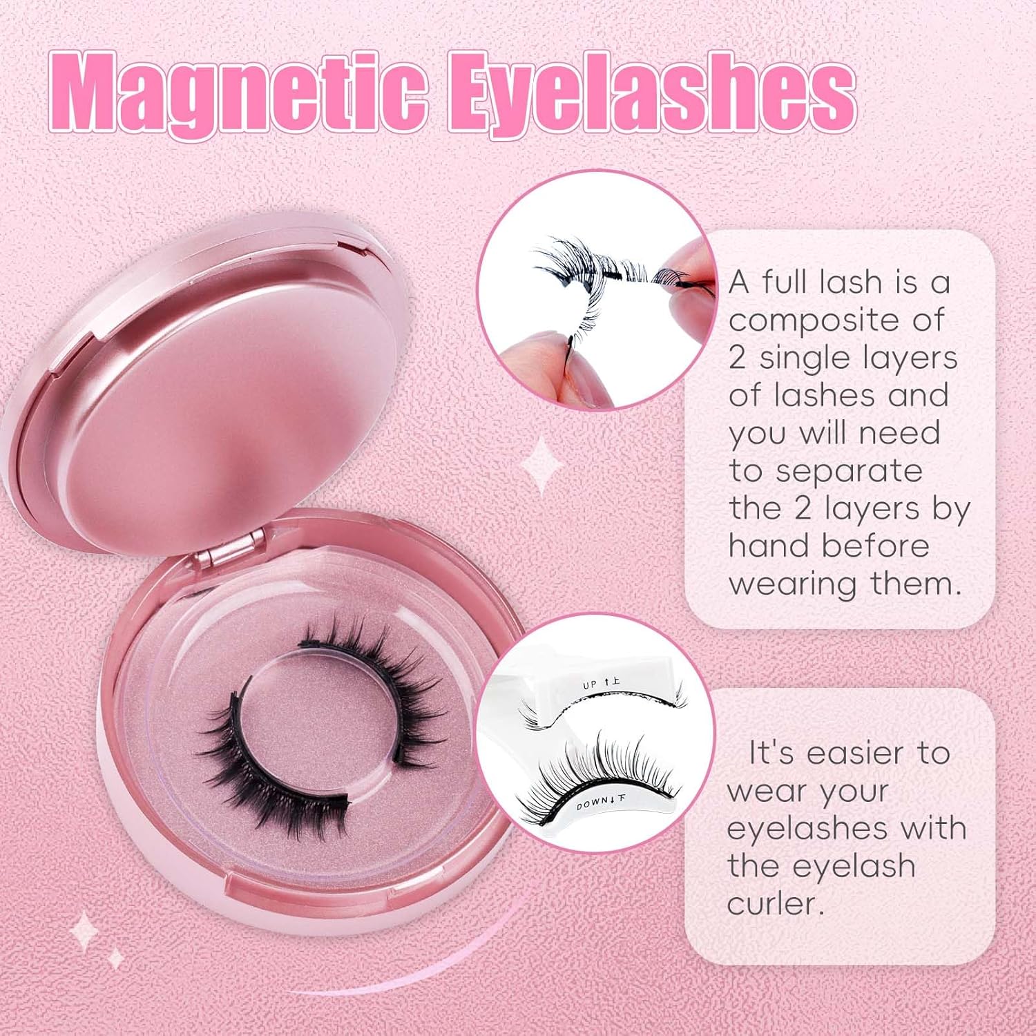 - 【No Glue Required】Say goodbye to the mess and hassle of glue with our Magnetic Eyelashes. The magnetic design ensures a secure fit without the need for sticky adhesives, making them for quick touch-ups or full-day wear without any discomfort. The eyelashes magnetic lashes can be easily matched with any cosmetics without glue.