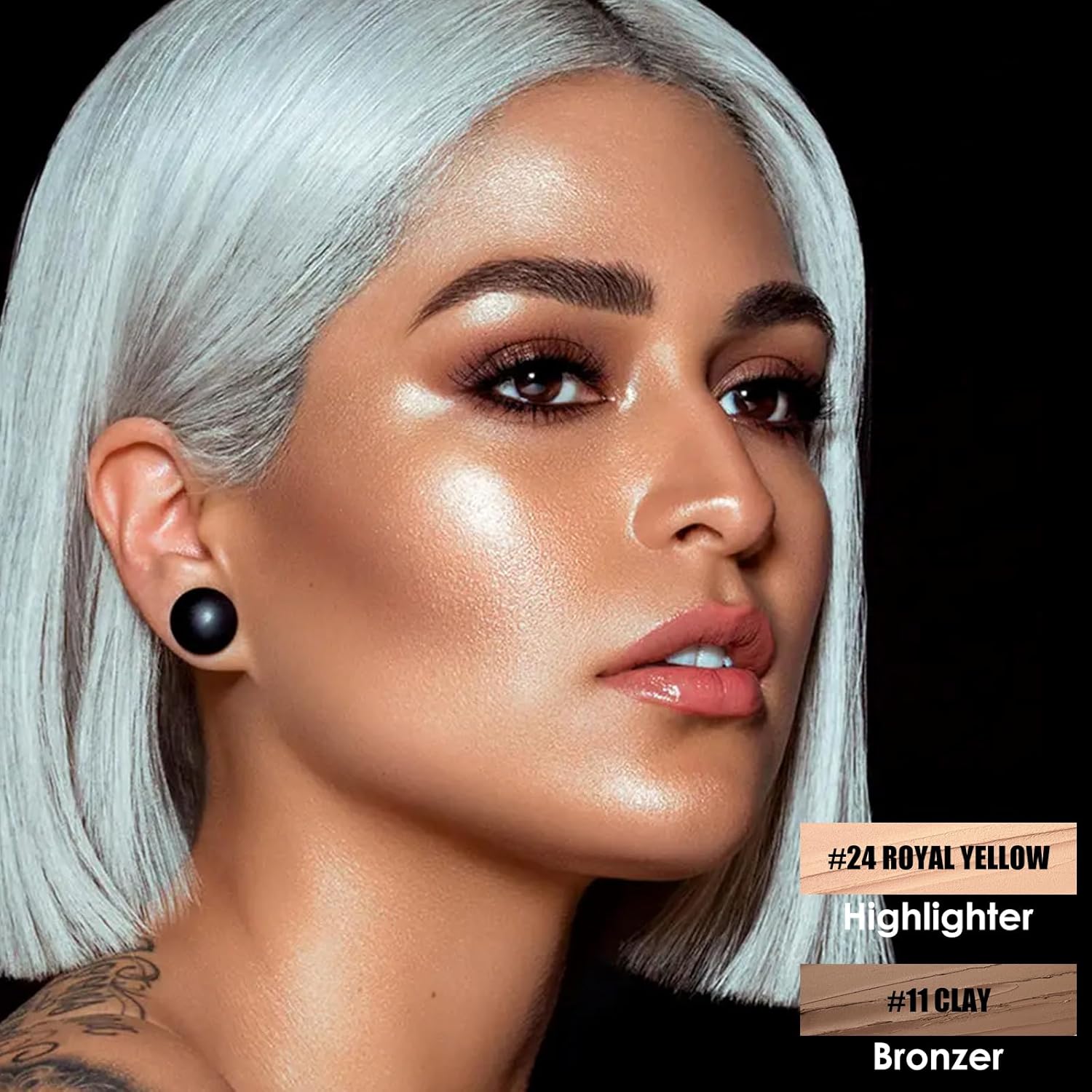 - Create 3D Makeup Effect:This contour stick set has a radiant bronzer and a shimmering highlighter to give skin a warm, natural glow. It melts beautifully into skin, never feeling sticky or greasy, and gives skin a revived and youthful look.