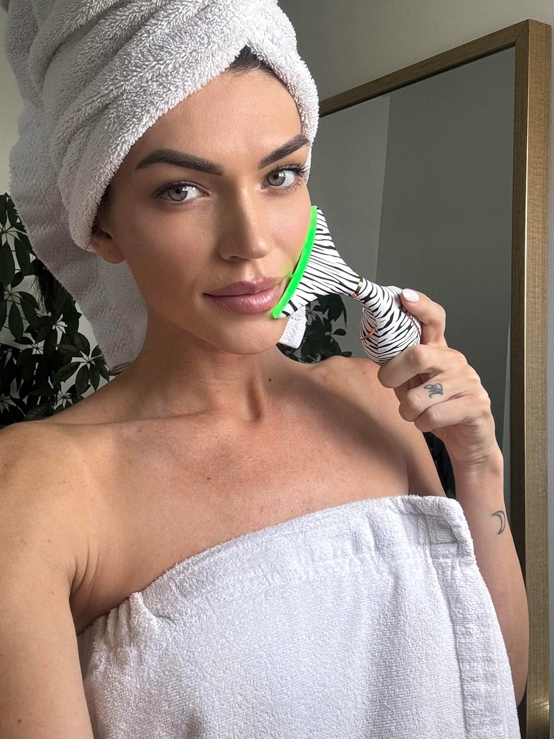 - Glo24k red light beauty device for face and neck—a soothing, at-home step for jawline and neckline care as part of your daily routine.