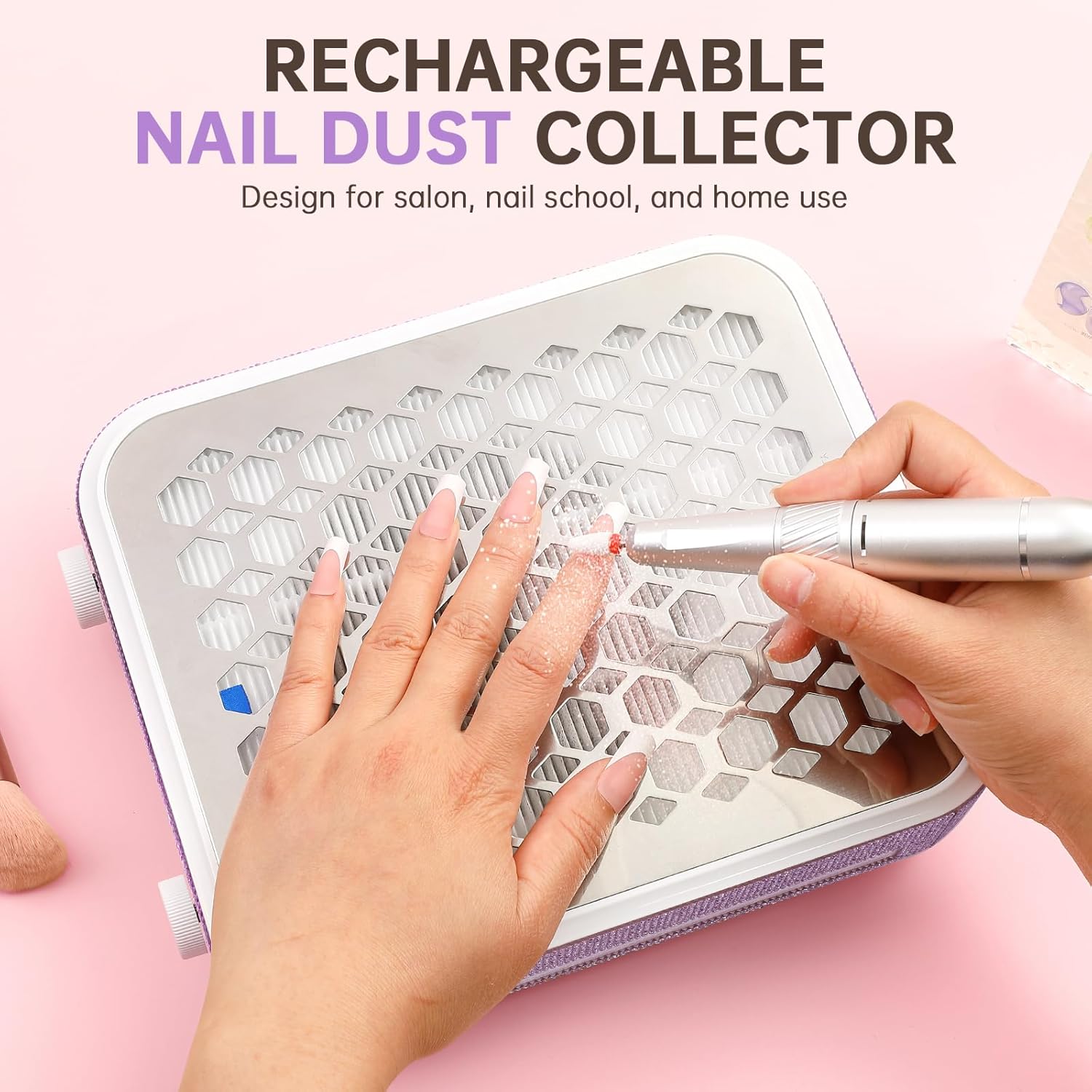 Nail Dust Collector, Rechargeable Dust Collector Nail Tech, Powerful Vacuum Fan Vent Dust Collector Extractor Dust Suction Machine for Acrylic Nails Polishing, Nail Salon&Home,Purple