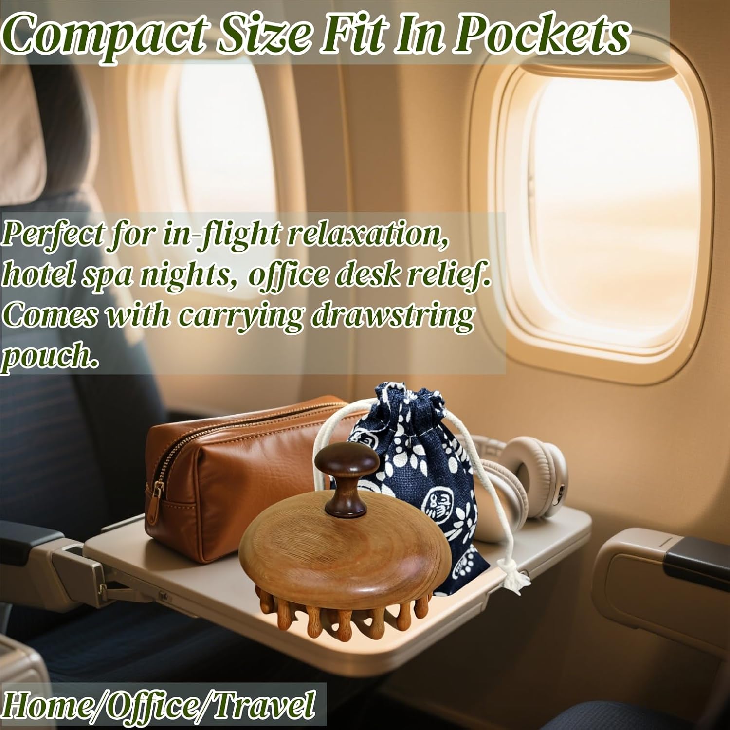 Sandalwood Scalp Massager | Manual Gua Sha Brush for Scalp Care & Relaxation | Portable Wooden Massager with Gift Pouch for Hair Growth & Stress Relief