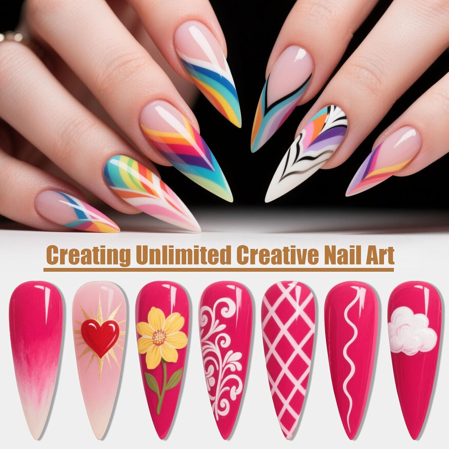 - FEATURES:The variety of brush sizes is good for nail art design, helping you create beautiful nail patterns in seconds. Ideal for drawing thin fine lines, painting flowers and pattern design on nail tips. Great for small details, filling in colors, marbling, swirling, blending, short strokes, etc