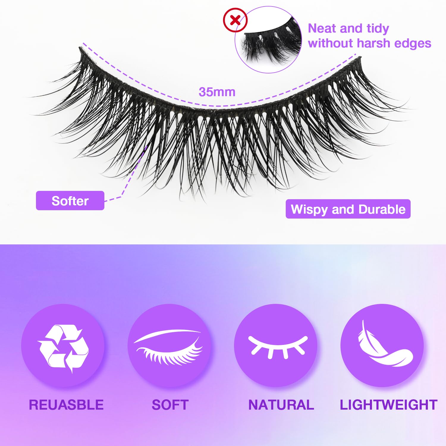 - All-Day Waterproof Warrior: Sweat-proof, rain-ready fake eyelashes that stay flawless for 12+ hours! Natural-looking strip lashes with flexible band won’t lift corners. Perfect for weddings, workouts, or humid days – reusable wispy magic!