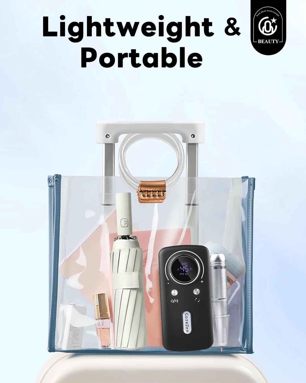 CozyZen Cordless Nail Drill Professional: 45000 RPM Rechargeable Electric Nail File Kit, Portable & Low Noise for Acrylic, Gel Nails, Manicure & Pedicure - Salon & Home Use