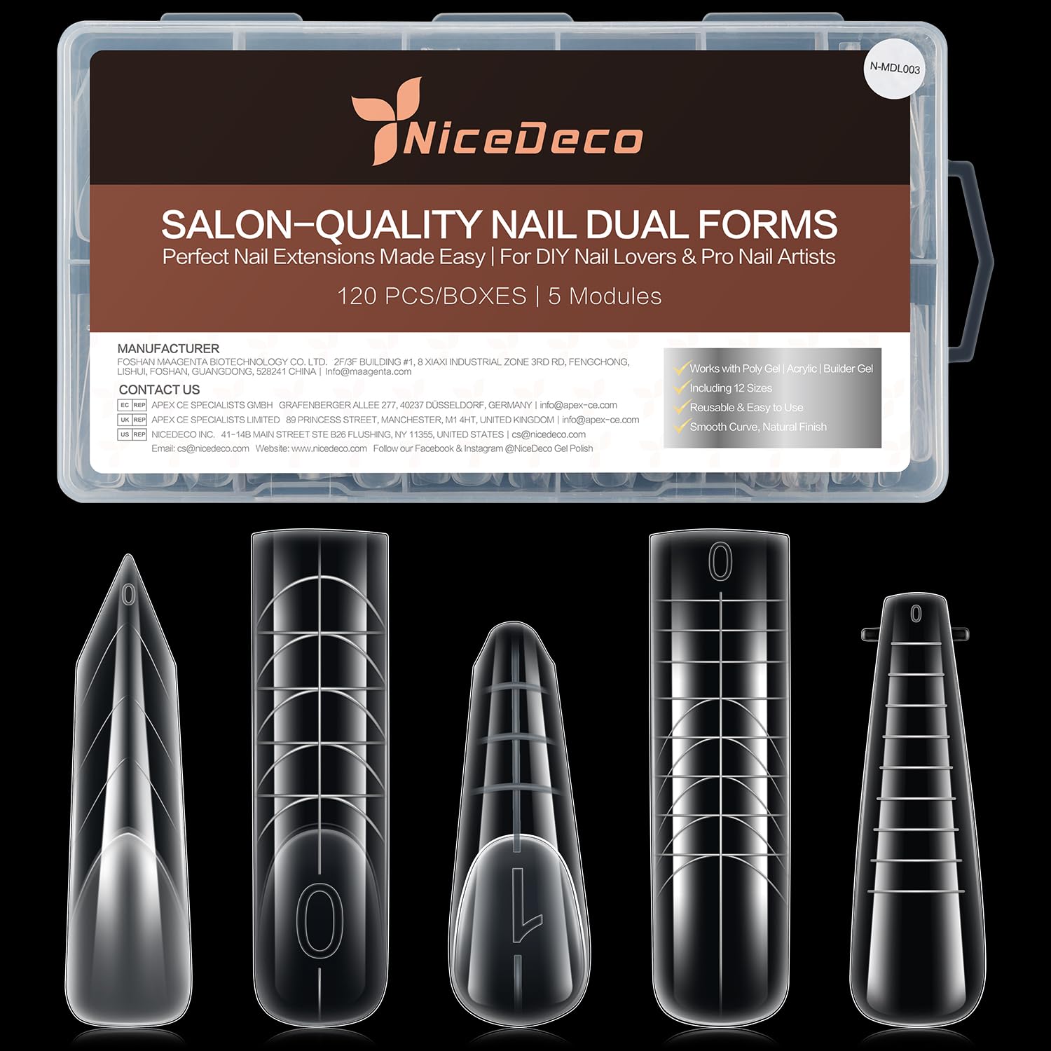 - Versatile Dual Nail Forms Set: Includes 120pcs in 5 different style shapes with 12 sizes, making it easy to choose the perfect fit for poly extension gel dual forms. Ideal for home DIY use to create personalized nail tips for salon-quality manicures at home.