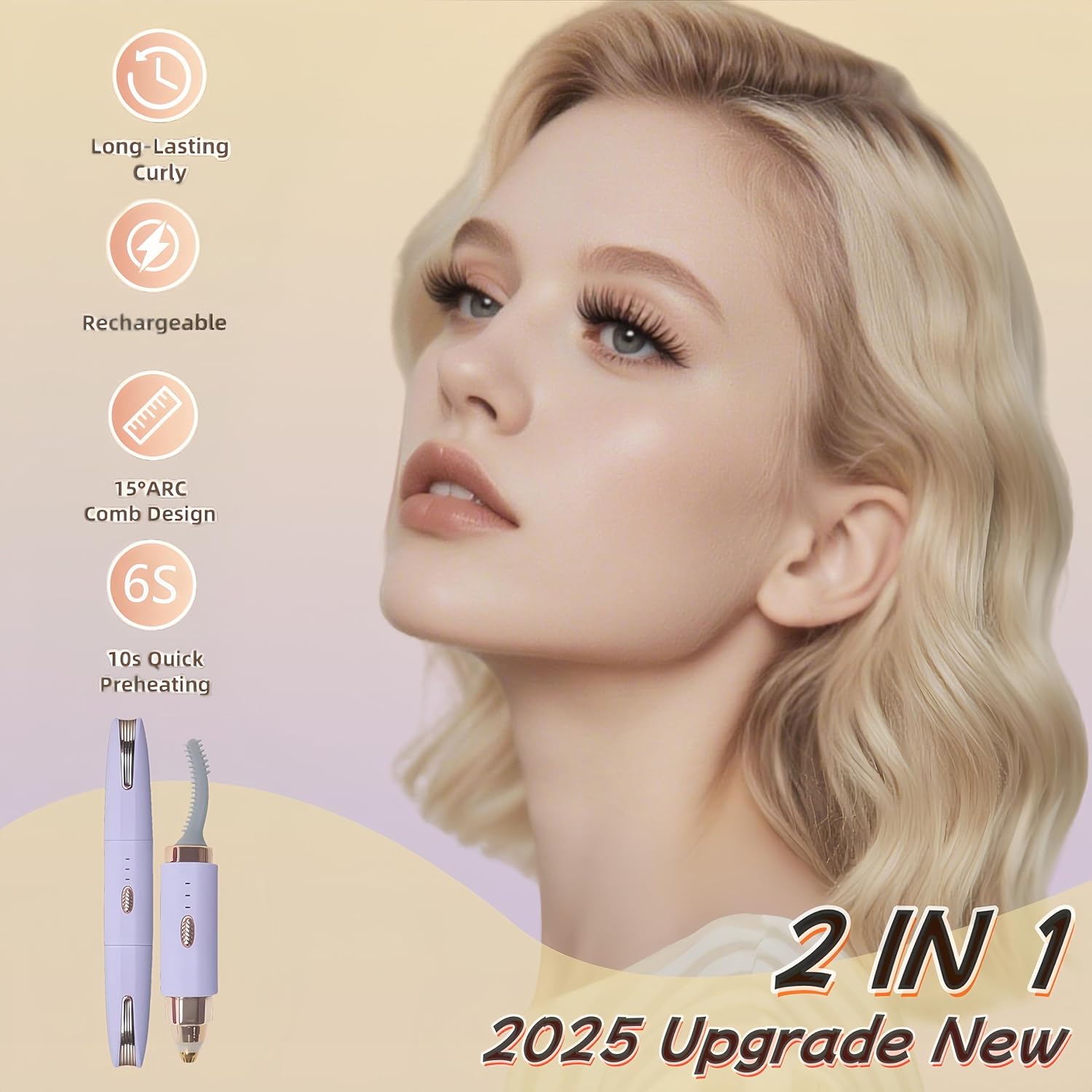2025 Upgraded Heated Eyelash Curler - 2-in-1 USB Rechargeable Electric Eyelash Curler & Eyebrow Trimmer, Fast Heating in 6s, Anti-Burn Design, 24H Long-Lasting Effect, Gift for Women (Purple)