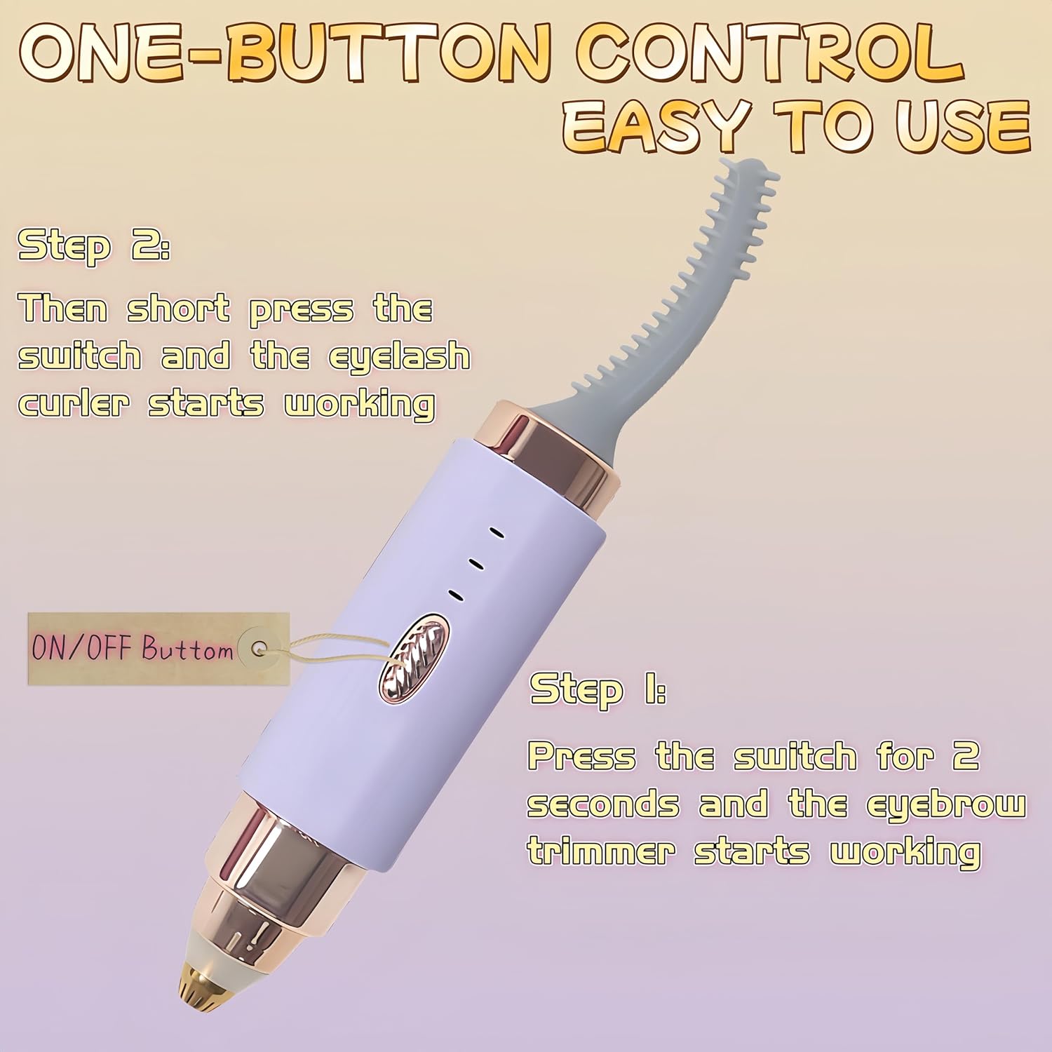 - 【One-Button Easy Operation】: Simplify your beauty routine with our heated eyelash curler and eyebrow trimmer, designed for effortless use. A single button lets you precisely choose the desired function: long-press for 2 seconds to activate the eyebrow trimmer, then short-press to switch to the eyelash curler. With its intuitive design, you can enjoy seamless operation, making it perfect for achieving stunning lashes and brows with ease