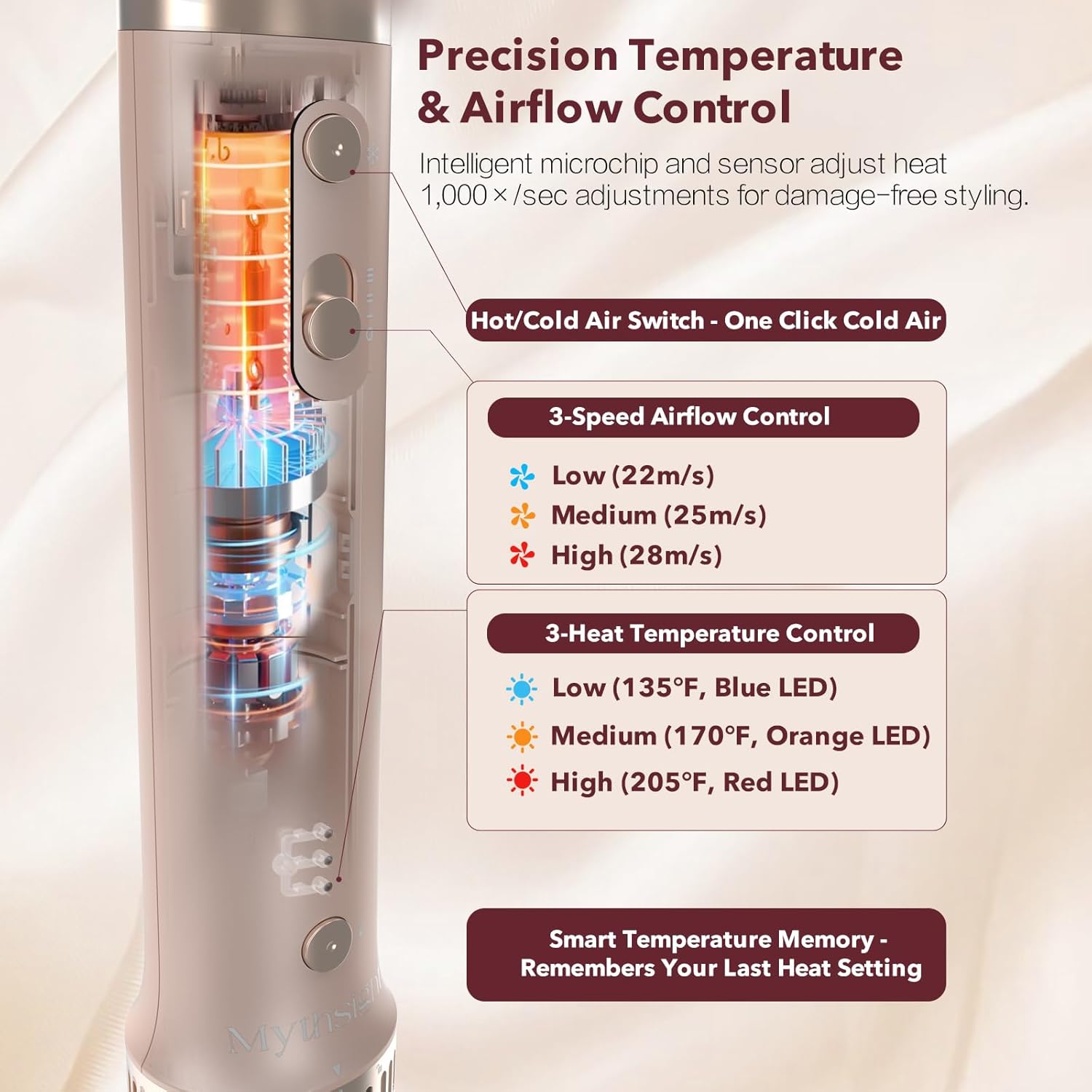 - For All Hair Types, Salon Results at Home or on the Go — One styling tool for fast drying, blowouts, root-lift volume, sleek straightening, and left/right auto-wrap curls, swap attachments in seconds for any look. Works on straight, wavy, curly, and coily hair—from fine to thick, short to long.
