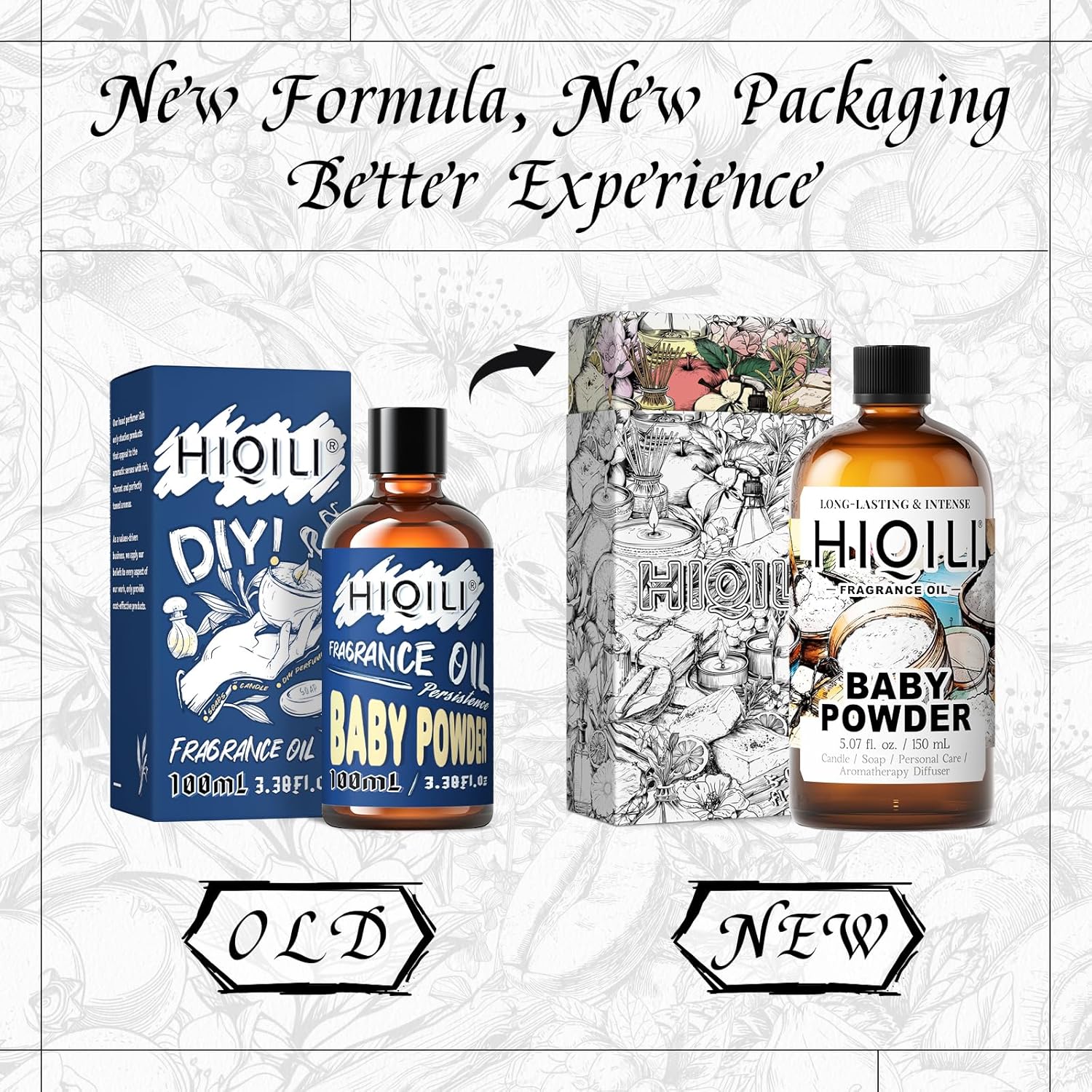 HIQILI Baby Powder Fragrance Oil - for Body Oils, Laundry Detergent, Candle, Perfumes & Soap Making, and Home Diffusers Use - 5.07 Fl Oz