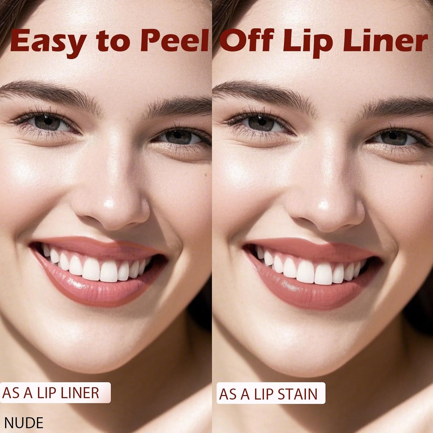 Lip Liner Stain Peel Off with Tweezer, Long Lasting Matte Lip Tattoo, Highly Pigmented Color Lip Makeup, Waterproof, Transfer-proof Lipstain for Women, for All Skin Types, Nude