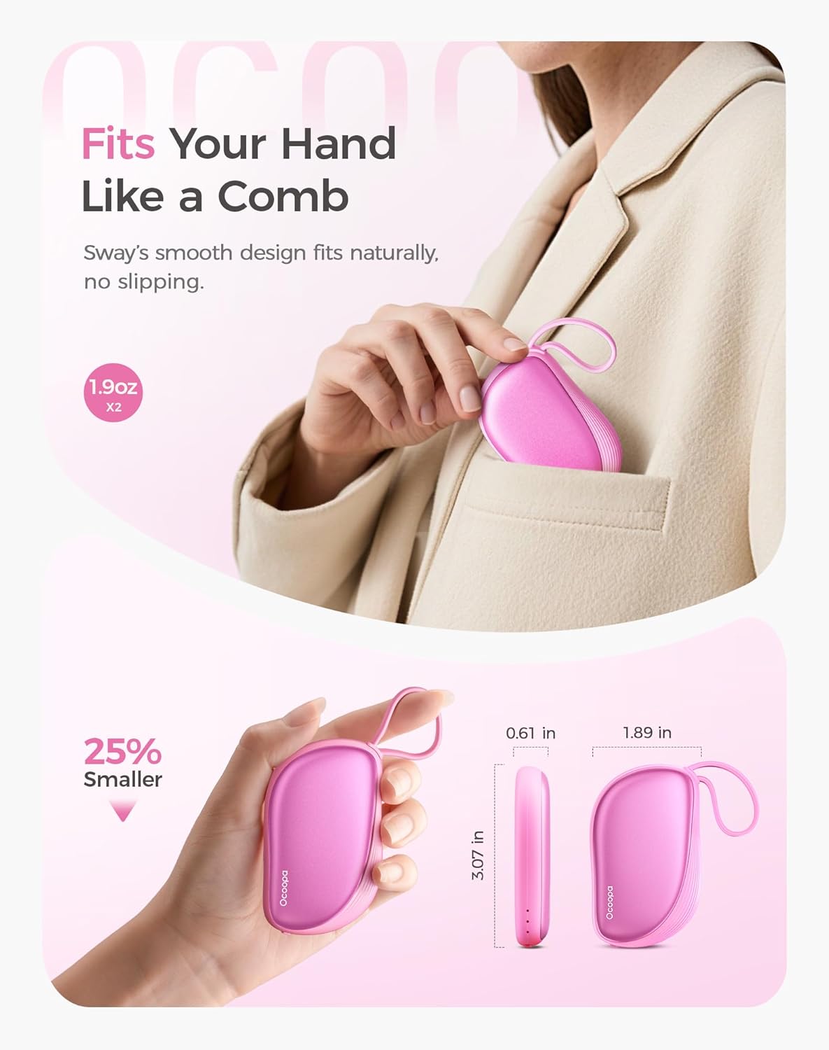 OCOOPA Hand Warmers Rechargeable 2 Pack, Ultra Slim Electric Hand Warmers, Portable Pocket Heater, Comb-Inspired, Fits in Gloves,UL Certified, Winter Essentials,UT5 Sway