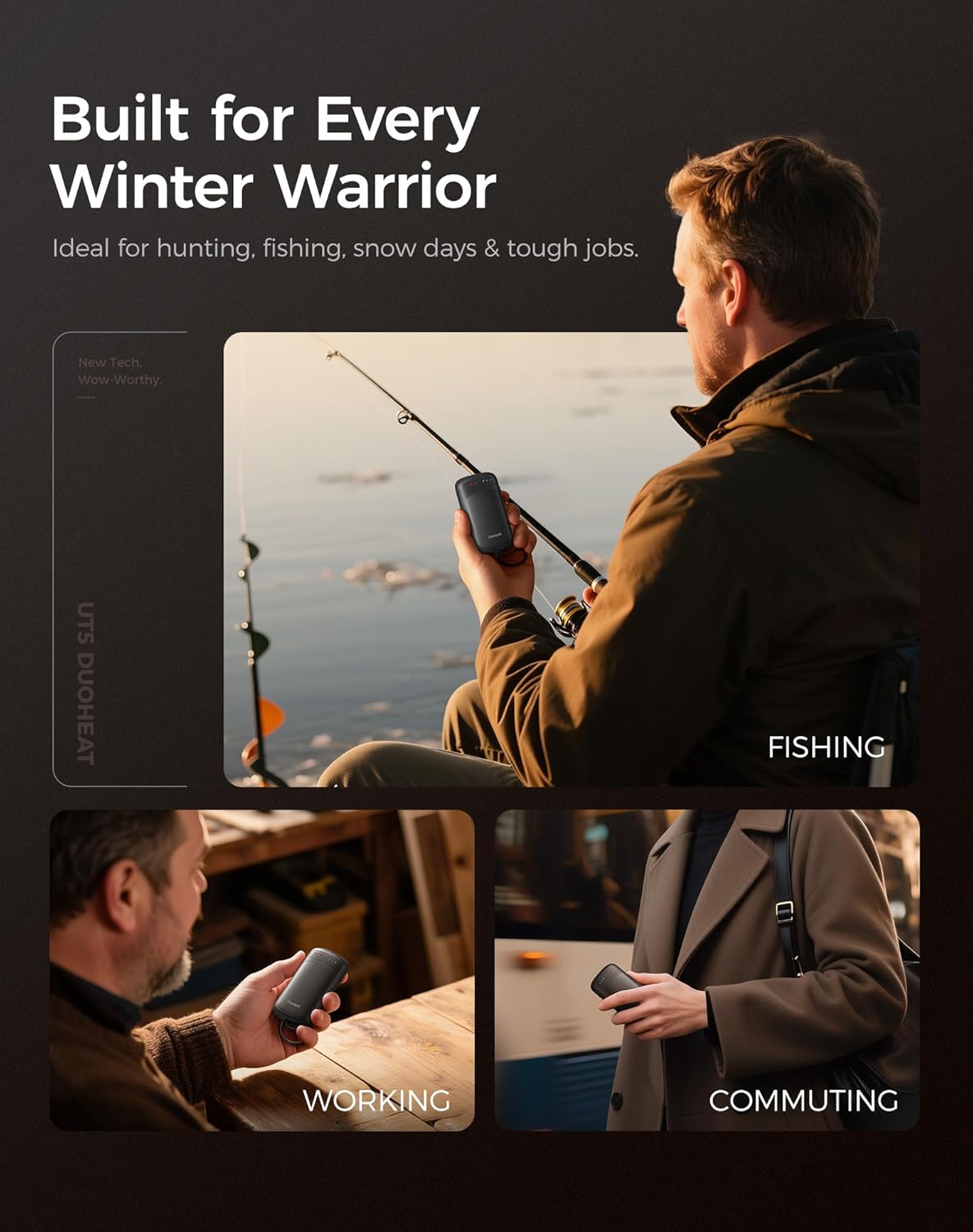 - Two-Pack, Pocket-Friendly Design – Lightweight than a lighter, UT5 Duoheat portable hand warmer weighs just 2.36 oz and 0.6 inches thick, can slips easily into gloves, pockets, or bags. Ideal gift for Christmas, Valentine's Day, or winter birthdays.