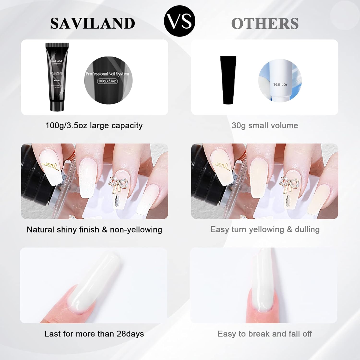 - 🌷 LONG-LASTING & EXQUISITE PACKAGE-Saviland poly gel is durable, the finish effect from poly extension gel can last for more than 21 days. And the packing is high quality, soft hose, sealed and no leaking, easy to squeeze out. And it is also an ideal gift for yourself or your friends who are keen on doing nail designs.