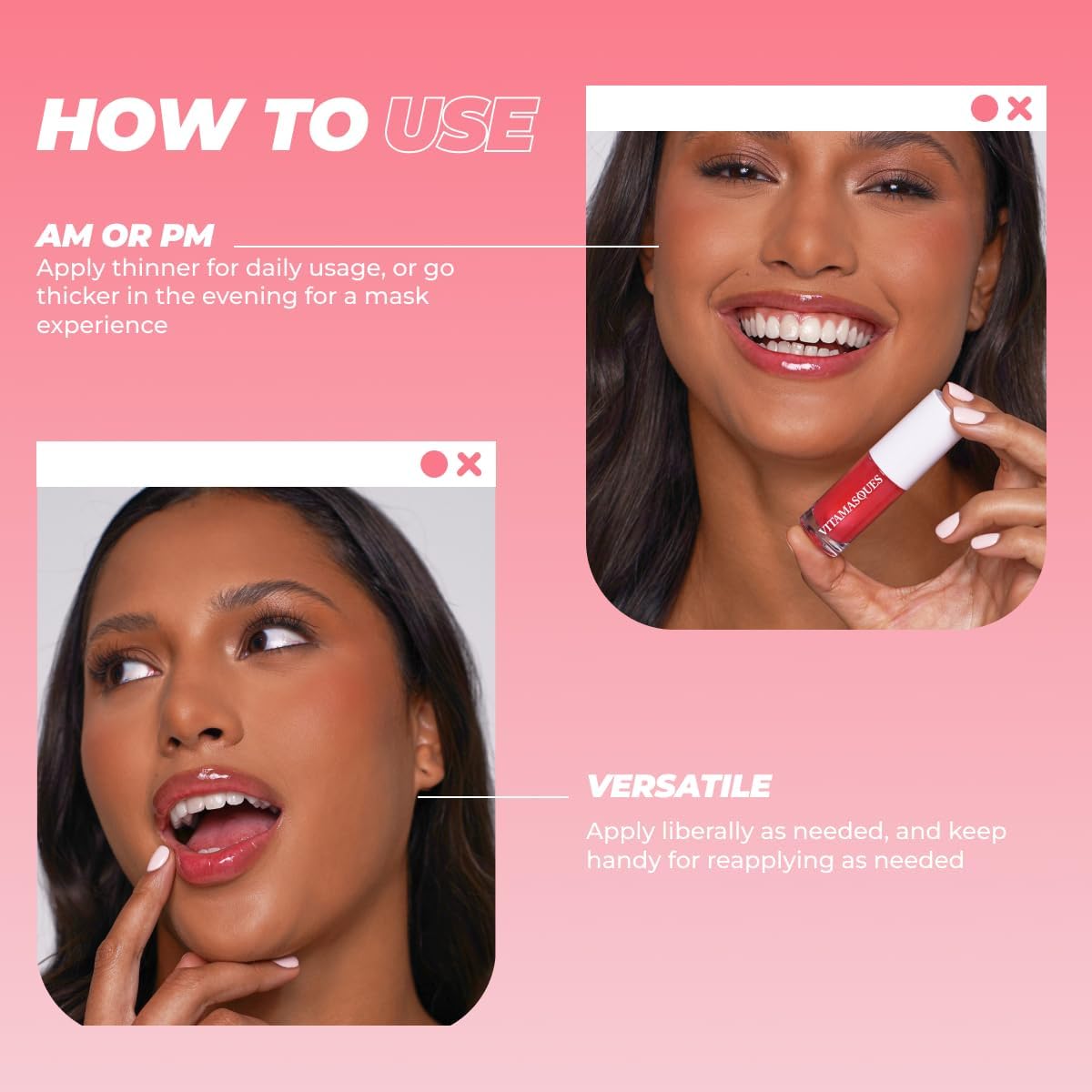 Vitamasques Korean Lip Oil Stain - Watermelon, Plump & Hydrate, Korean Lip Gloss, Lip Gloss plumper, Lip Oil For Women, Non-Sticky Lip Glow Oil Moisturizing - 0.17 Fl Oz