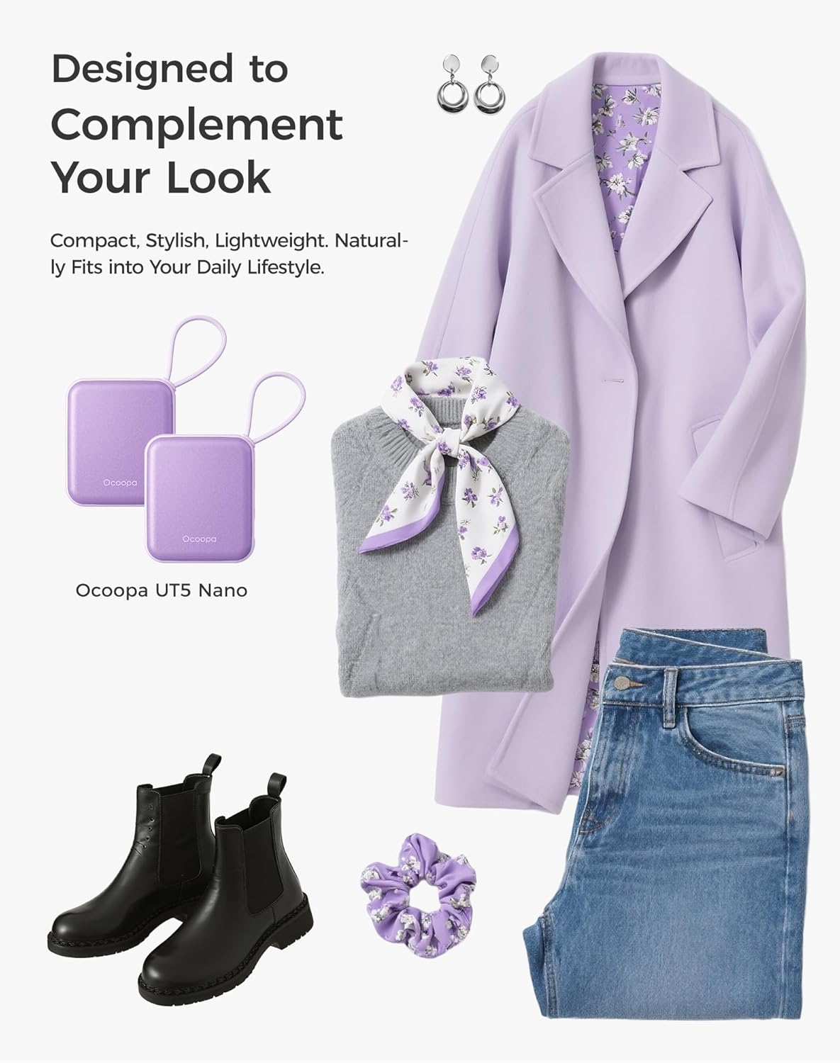 - Ultra-Nano Size – Designed for Her Hands: This ultra-slim rechargeable hand warmer smaller than your palm, lighter than a lipstick. UT5 Nano fits perfectly in gloves, pockets—even wallets. Tailored for women who love warmth without the bulk.