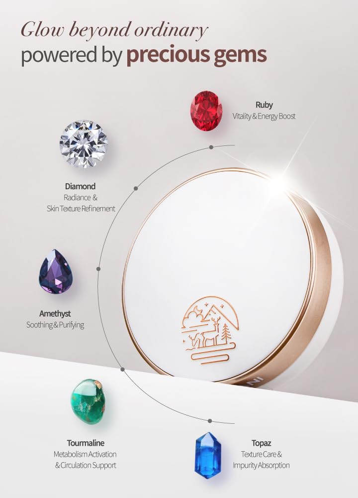 - Radiant Coverage with Gemstone Complex : Infused with a blend of diamond, ruby, amethyst, tourmaline, and topaz extracts, this cushion delivers a clear, luminous finish inspired by natural gemstones. It enhances your skin's natural glow while promoting a healthy-looking complexion.