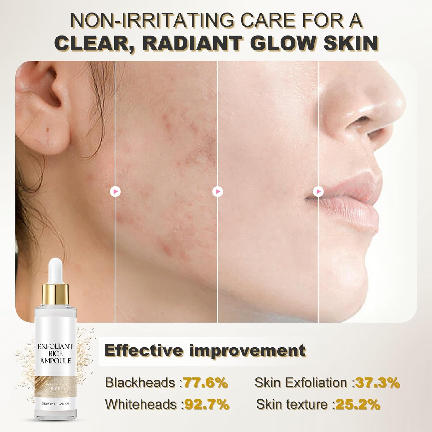 - 【GENTLE EXFOLIATION + DEEP CLEANSING】This peeled ampoule facial scrub exfoliator is powered by rice bran water and salicylic acid, which can easily remove dead skin cells, unclog pores and remove impurities without irritation. Each use of this white rice peeling ampoule dead skin remover for body makes the skin smoother and softer, making it an ideal choice for daily exfoliation.