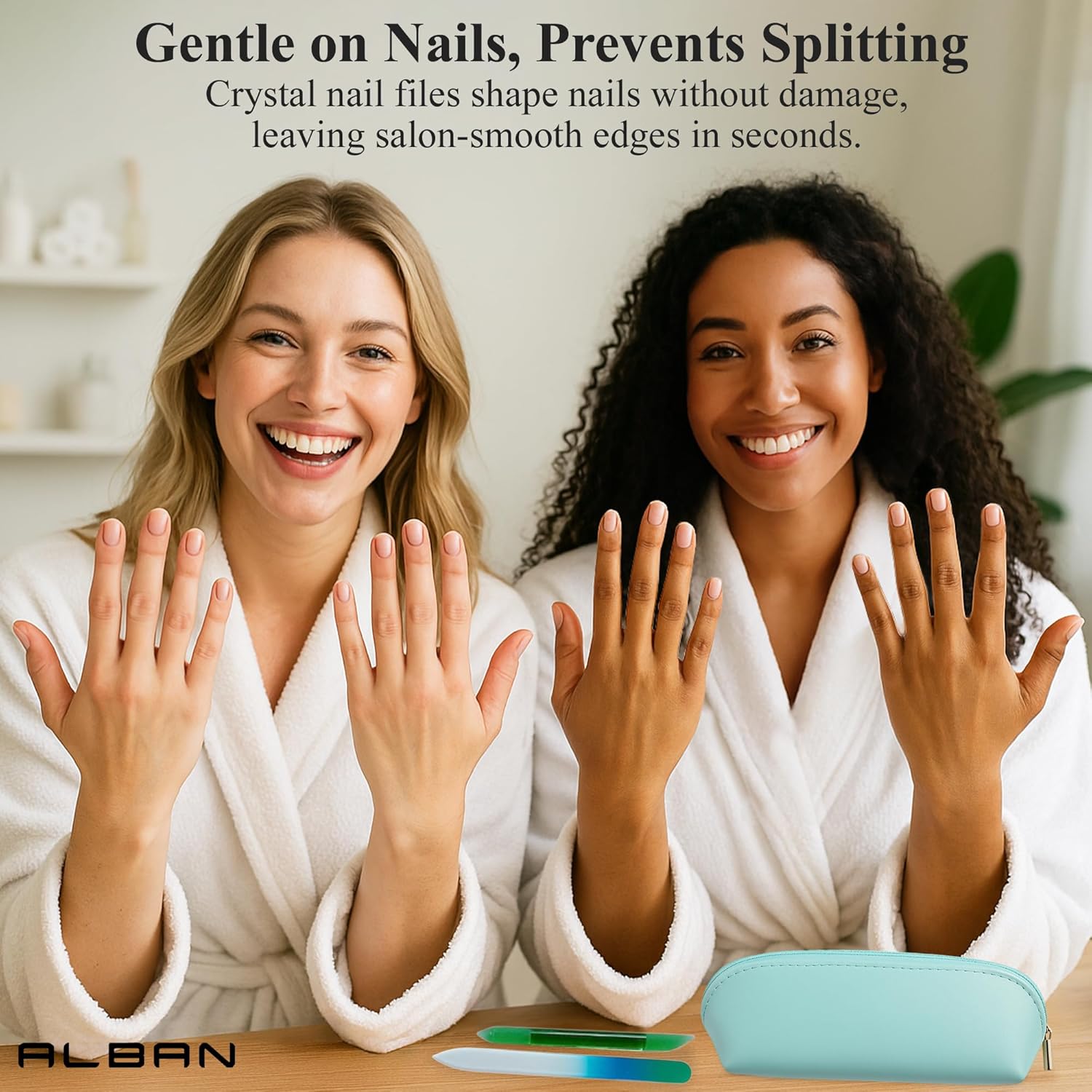 - Premium Czech Glass Craftsmanship: Each nail file is made from genuine Czech tempered glass, renowned worldwide for its strength, precision finish, and long-lasting performance. Designed to gently shape, smooth, and seal the nail edge without splitting or tearing.
