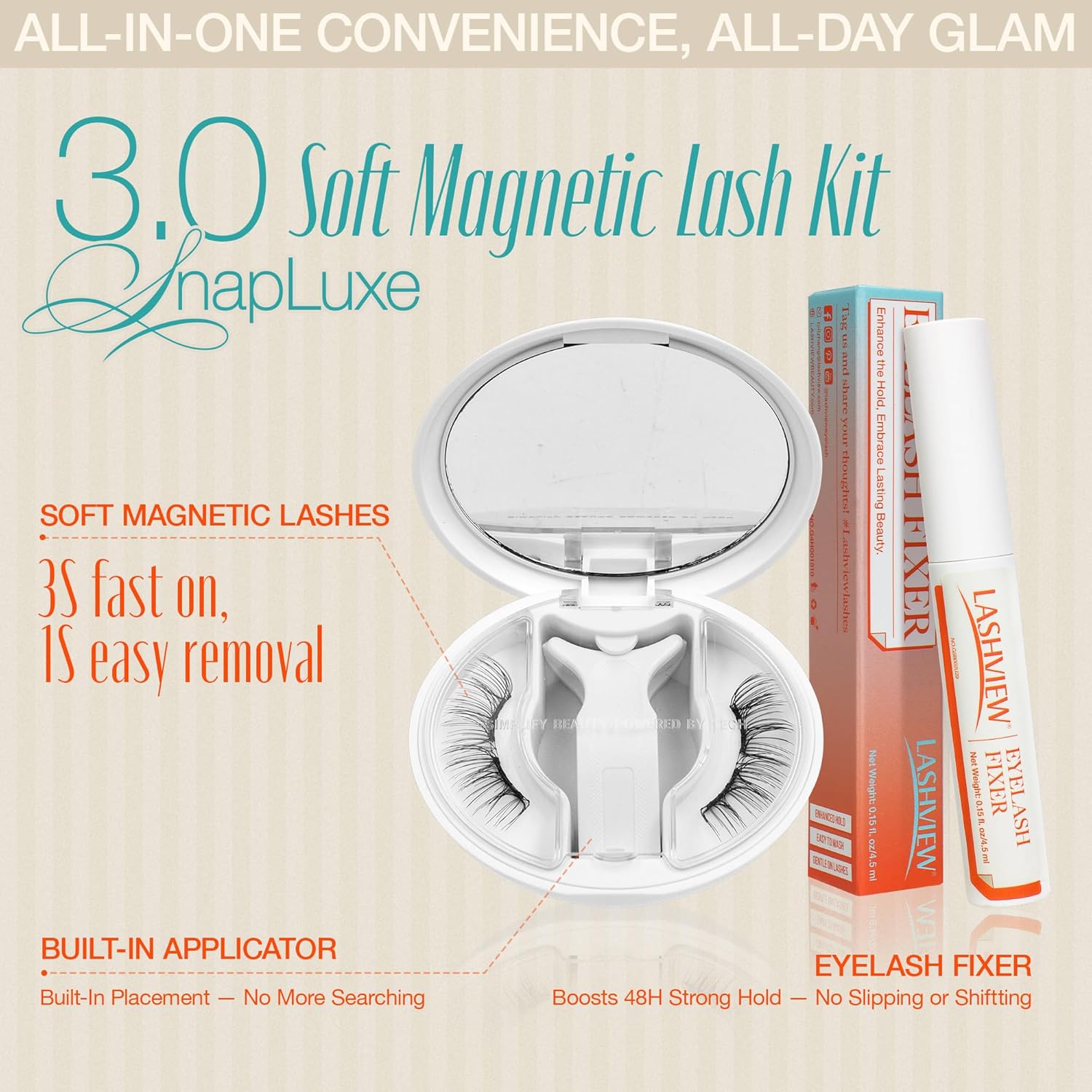 - [Instant Beauty in 3 Seconds] Pop on your magnetic lashes in just 3 seconds—even if you're a beginner. Lashview upgraded curved applicator makes placement a breeze. No glue, no remover—just snap and go. The soft magnetic lashes with applicator are super easy to remove with a simple pull—no remover, no extra makeup remover, only clean simplicity