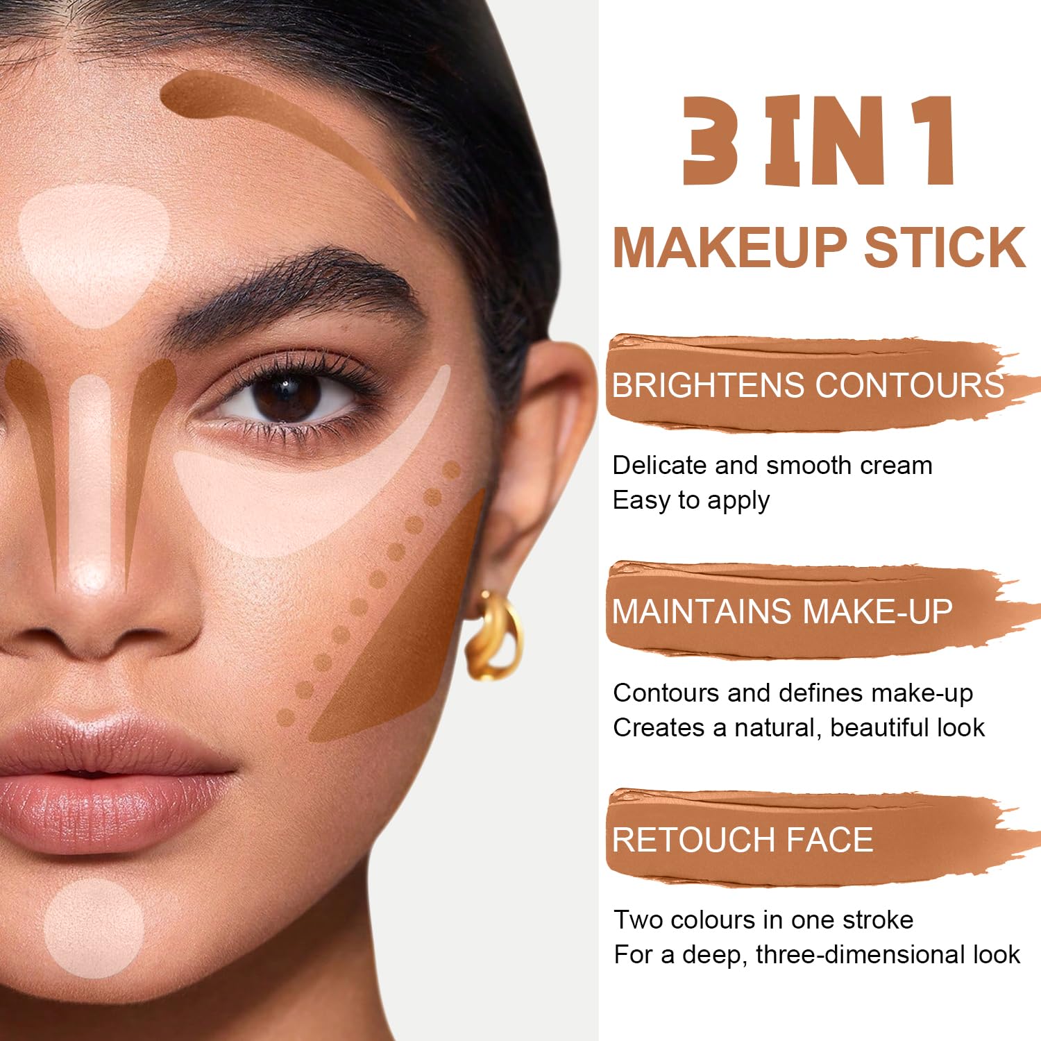 - 【Widely Used】The Dual-ended design made easy to apply and portable! the light end is good for blendable highlight such as forehead,cheek,neck,and outer corner of the eye.While the deep end as BRONZER for contouring makeup, perfectly outline various sculpted and 3D delicated Look.