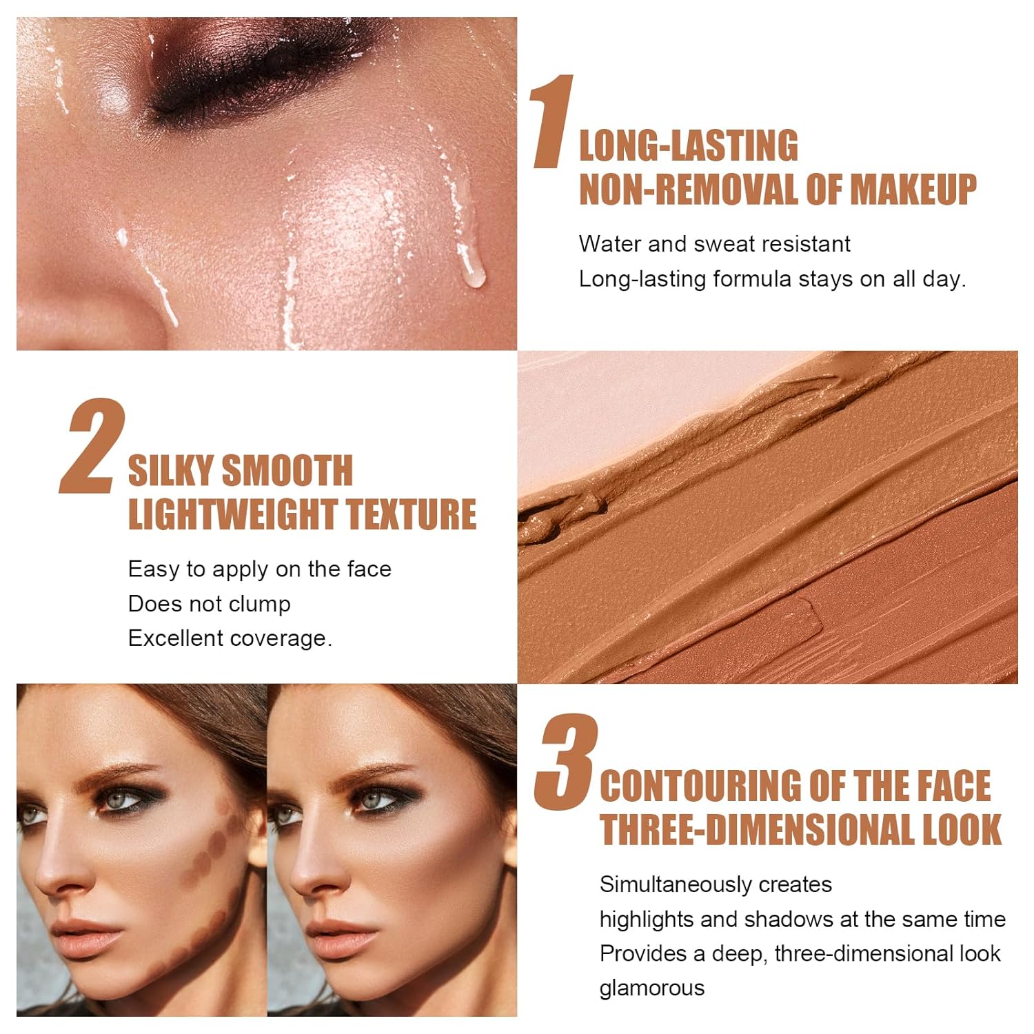 - 【Easy To Use】Apply effortlessly with flawless,glide like a butter on your cheeks,forehead,neck and chin for natural.Long lasting,water-proof,sweatproof with non-greasy.Give you naturally smooth lustrous, high-gloss finish makeup.