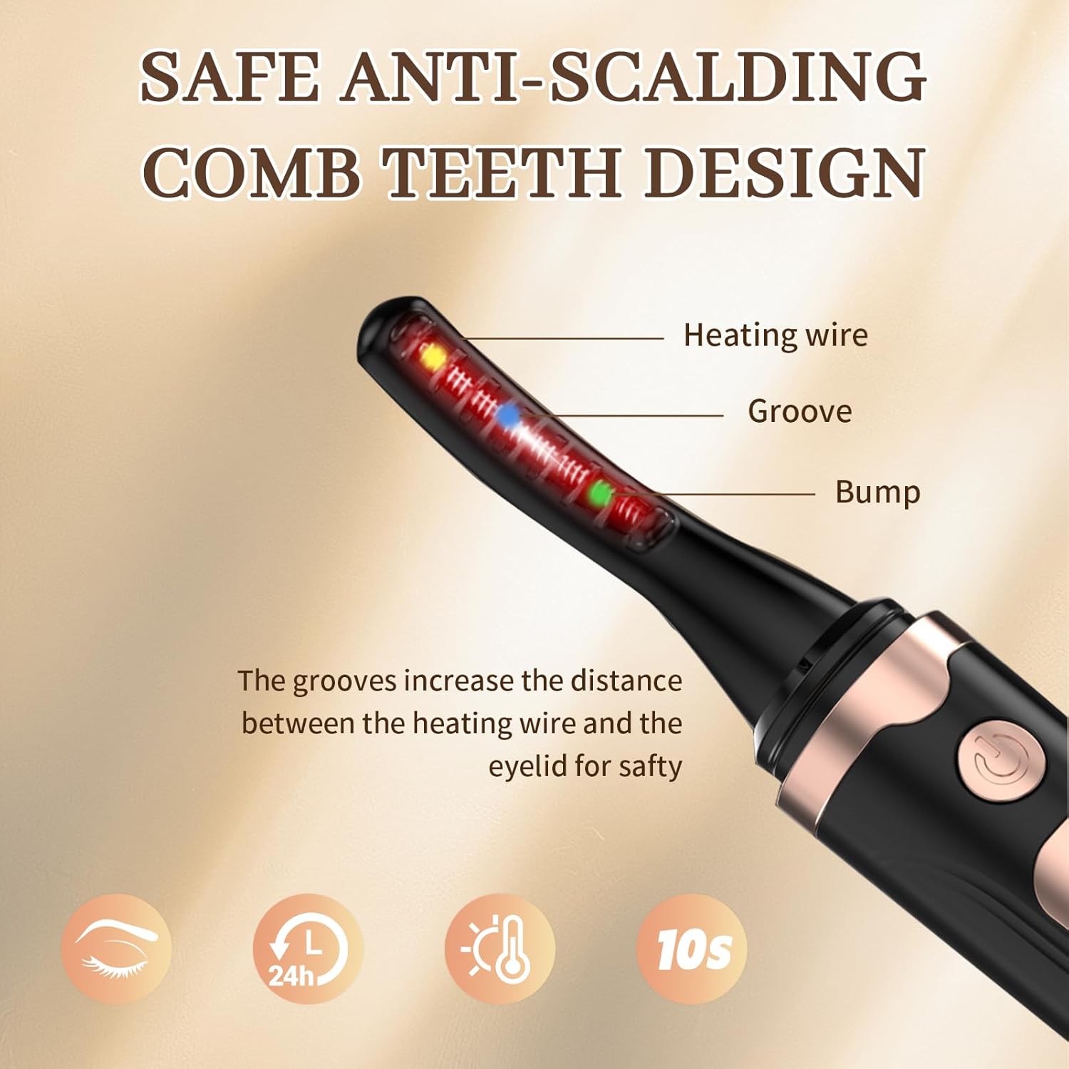 - 【SAFE AND HARMLESS】The Eyelash Curler Heat Double-Sided Anti-Scalding Comb Teeth Are Safe And Do Not Harm The Skin, And The Lashes Are Protected From The Grooves Through The Bumps So That They Are Curled Without Damaging The Eyelids.The Lash Curler With 5 Minutes No-Operation Auto-Break, Anti-Misoperation, Heat Insulation Protection Comb.He Thermal Insulating Protection Slots Can Avoid Heat Contacting The Eyelid