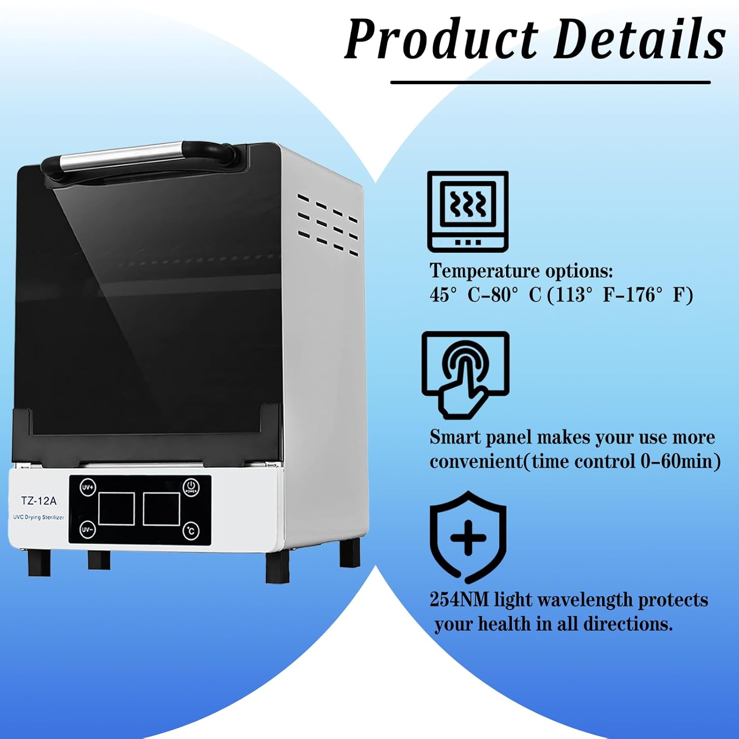 - 【Eficient cleaning method】Light + drying Cleaning Cabinet. The light wavelength is 185-254nm. With the optimal wavelength, it cleans more thoroughly and protects your health and safety!