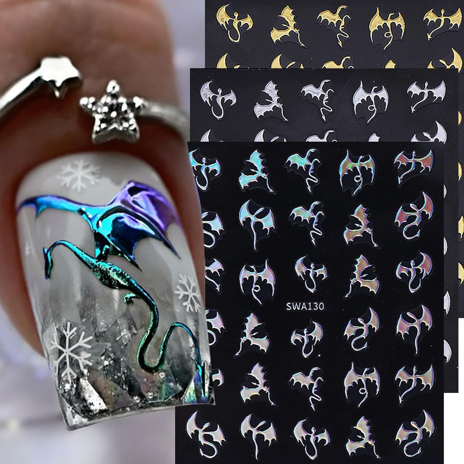 - Halloween-themed Nail Art: Our Halloween nail decals for nails art feature glittery metallic foil designs, including elements such as dragons, bats, spider webs, ghosts, pumpkins, leaves, red blood, and keys, as well as other 3D nail designs with Halloween DIY themes. Specifically designed for women, the patterns are cute and not scary, making them perfect for Halloween nail stickers.
