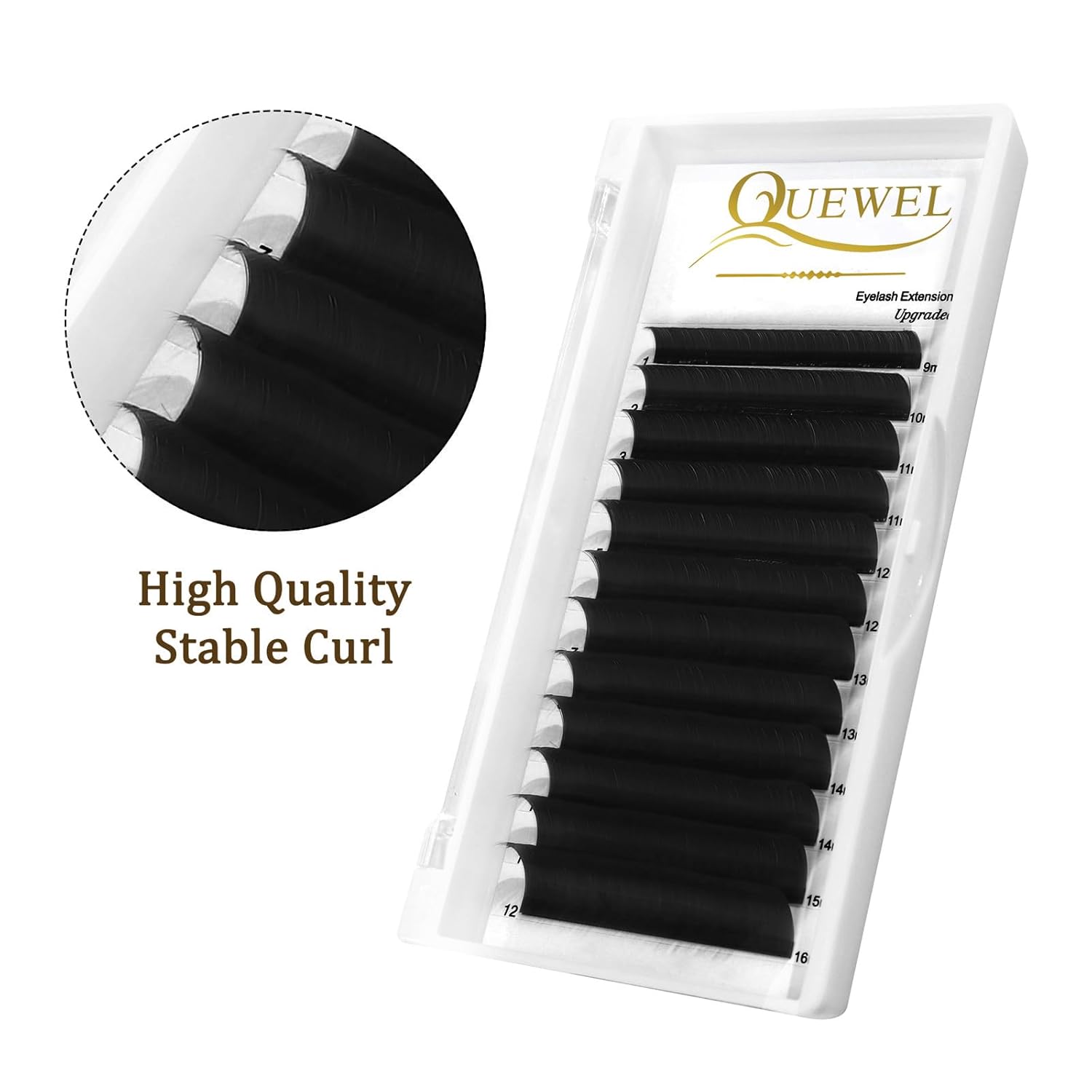 - COLOR LASHES-EASY FAN VOLUME LASHES : QUEWEL black mega volume lash extensions,0.07 D Curl,mixed 9-16mm,12 rows per eyelash tray,including 9mm*1/10mm*1/11mm*2/12mm*2/13mm*2/14mm*2/15mm*1/16mm*1.