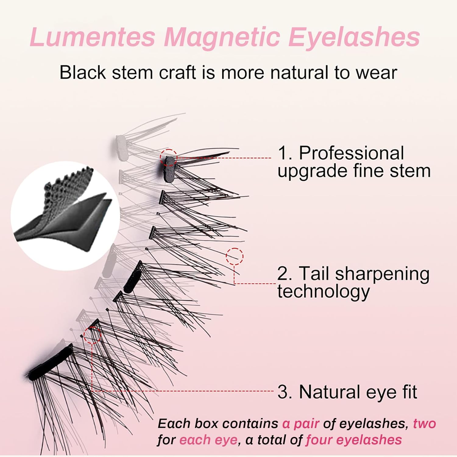 - 【No Glue, Gentle Fit】Lumentes magnetic eyelashes eliminate the need for harsh glues. Strong magnets hold lashes firmly in place, providing a gentle solution for delicate eyes. Perfect for everyday wear, travel, or special occasions